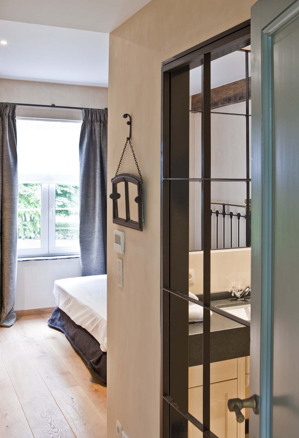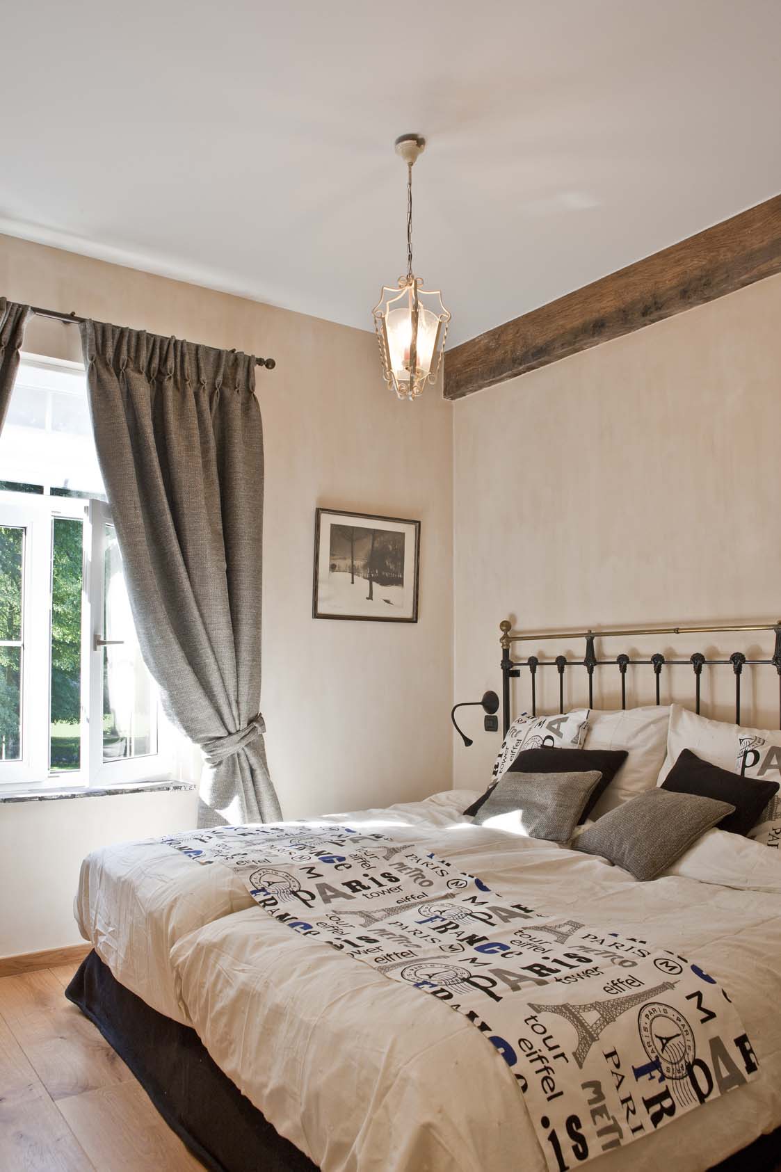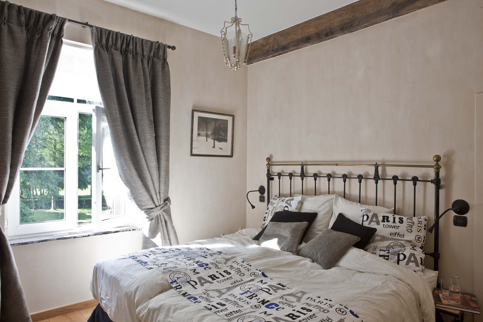 Notre chambre Eiffel, élégamment meublée, doit son nom à l’abondance de fer forgé recyclé qui la compose. Par exemple le pieds de la table faisaient autrefois partie d’un balcon.